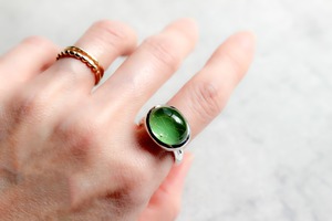 うぐいすメノウのグリーンに、ルチルクォーツの金線が上品に重なり、ポテッとしたタブレットストーンが愛らしいデザインです。 天然石はインクルージョン(内包物や含有物)を楽しむのも醍醐味。 size 14号 material silver925 stone size w14mm×d12mm×h9mm