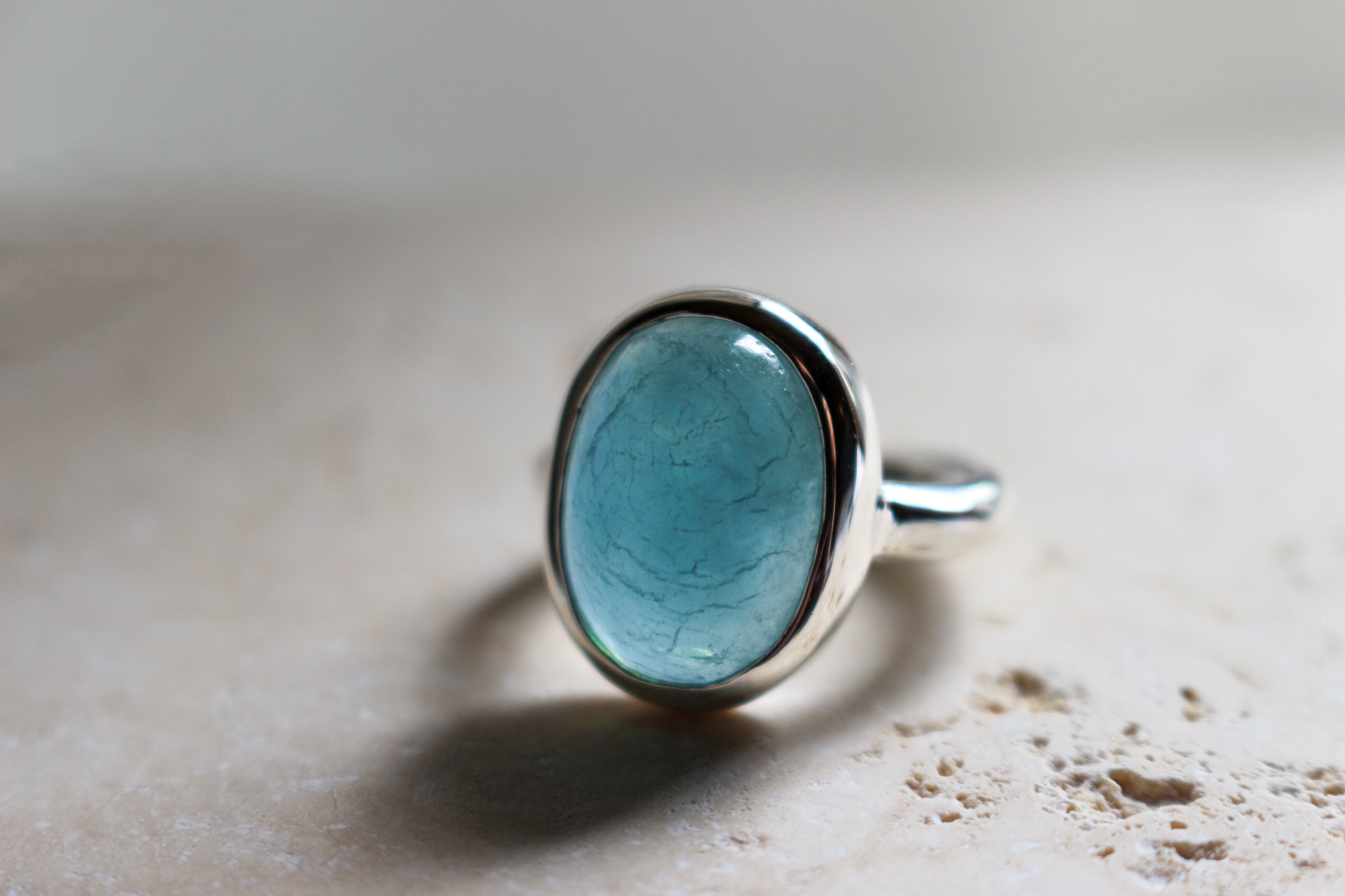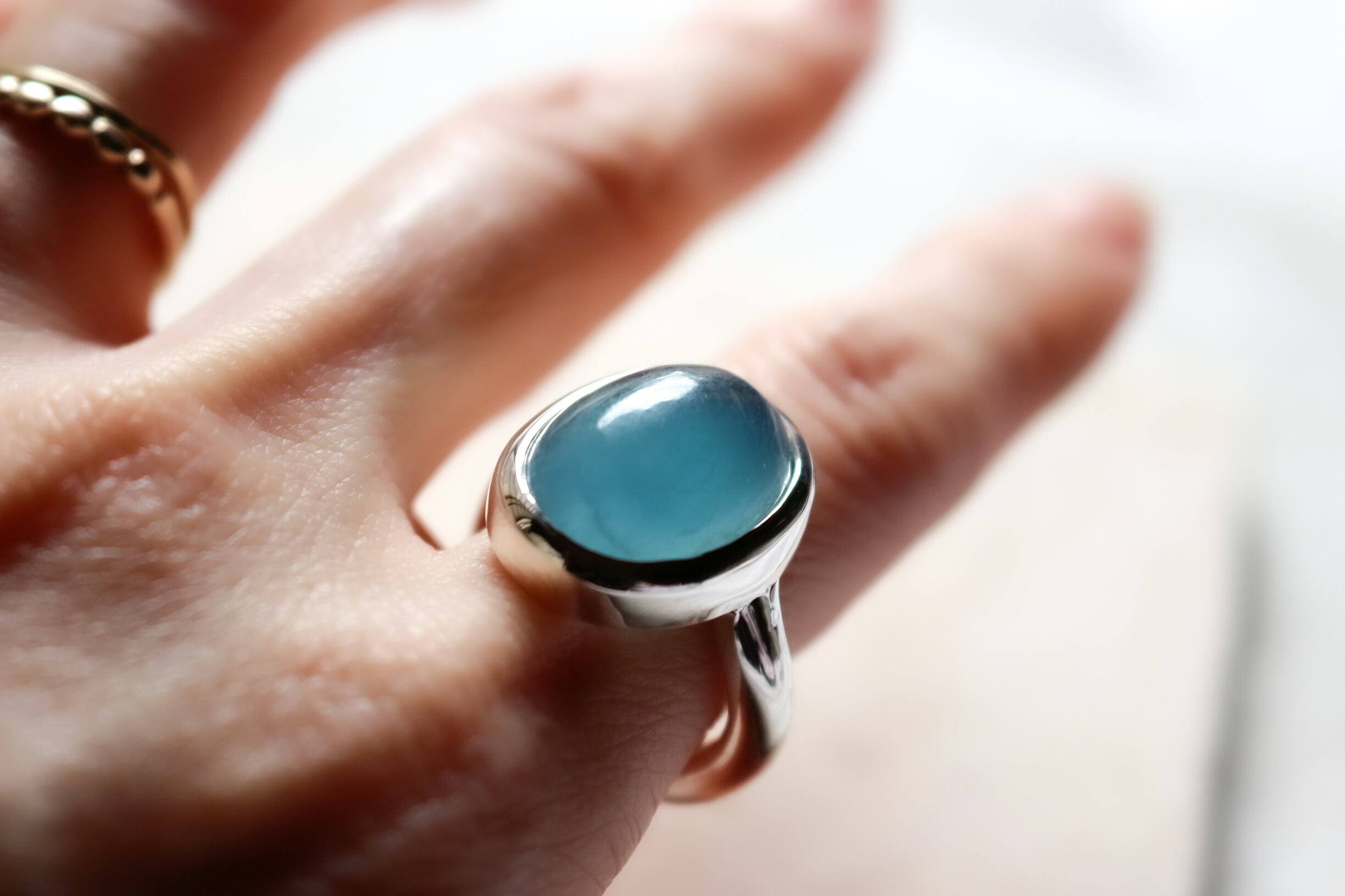 aquamarine ring (アクアマリン) 穏やかな海のようなブルー。 アーム部分はボリュームがありながら、 シンプルに。 インパクトのあるサイズ感はお手元を華やかに魅せてくれます。 size 11号 material silver925 stone size w14mm×d17mm×h9mm