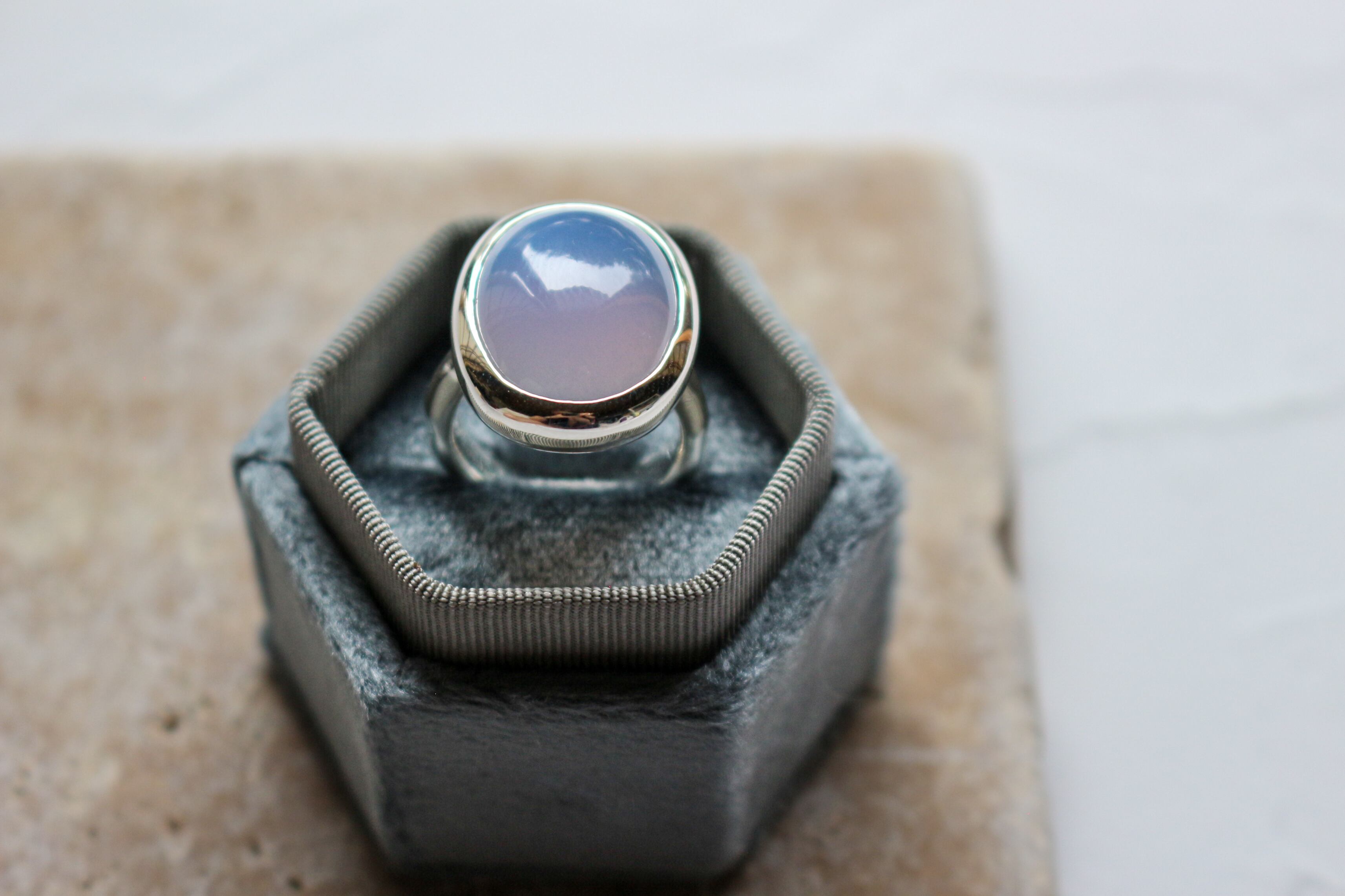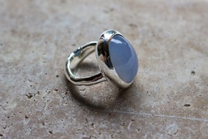 半透明の柔らかいラベンダーカラーがとても肌に馴染みやすい上質なブルーカルセドニー(染めなし) 上品な淡いブルーが合わせやすいです。 size 9号 material silver925 stone size w18mm×d13mm×h10mm