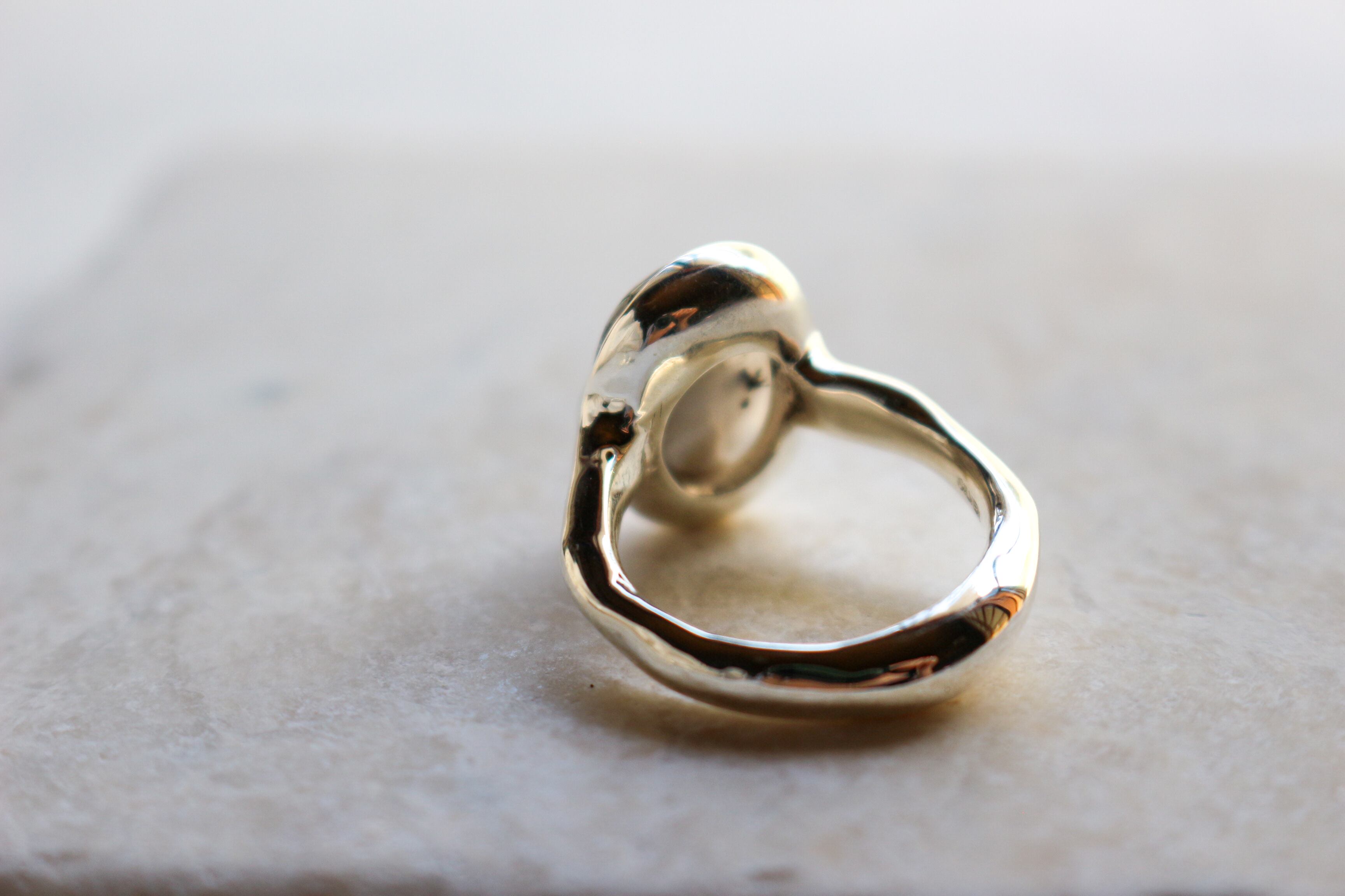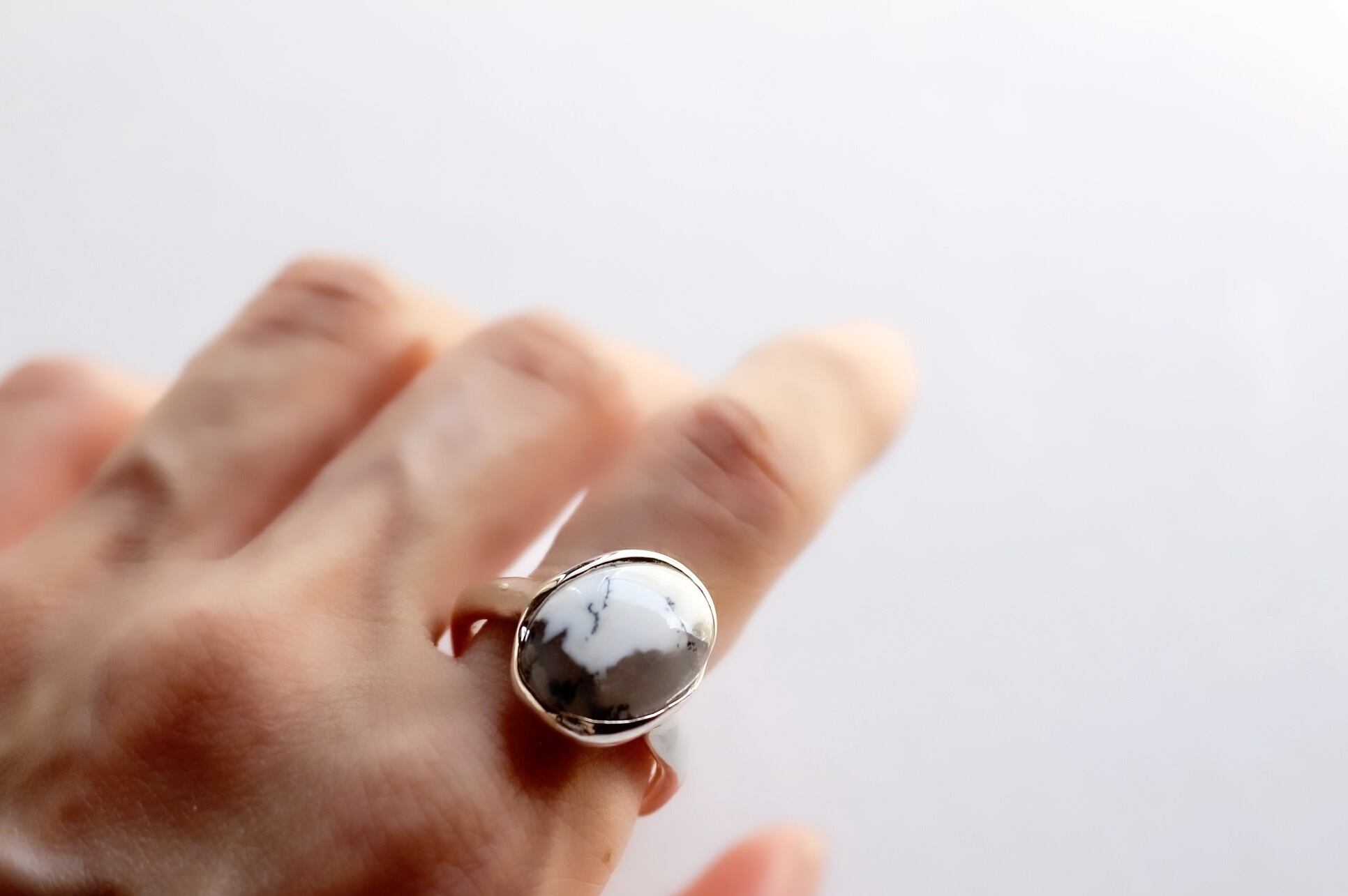 dendritic agate ring (デンドリックアゲート) アートなデンドリックアゲートの模様と、 遊び心を効かせたデザイン。 取り入れやすいカラーなので、 モダンなアレンジや都会的なアレンジにもフィットする さりげなく個性的なリング。 size 15.5号 material silver925 stone size w14mm×d17mm×h7mm
