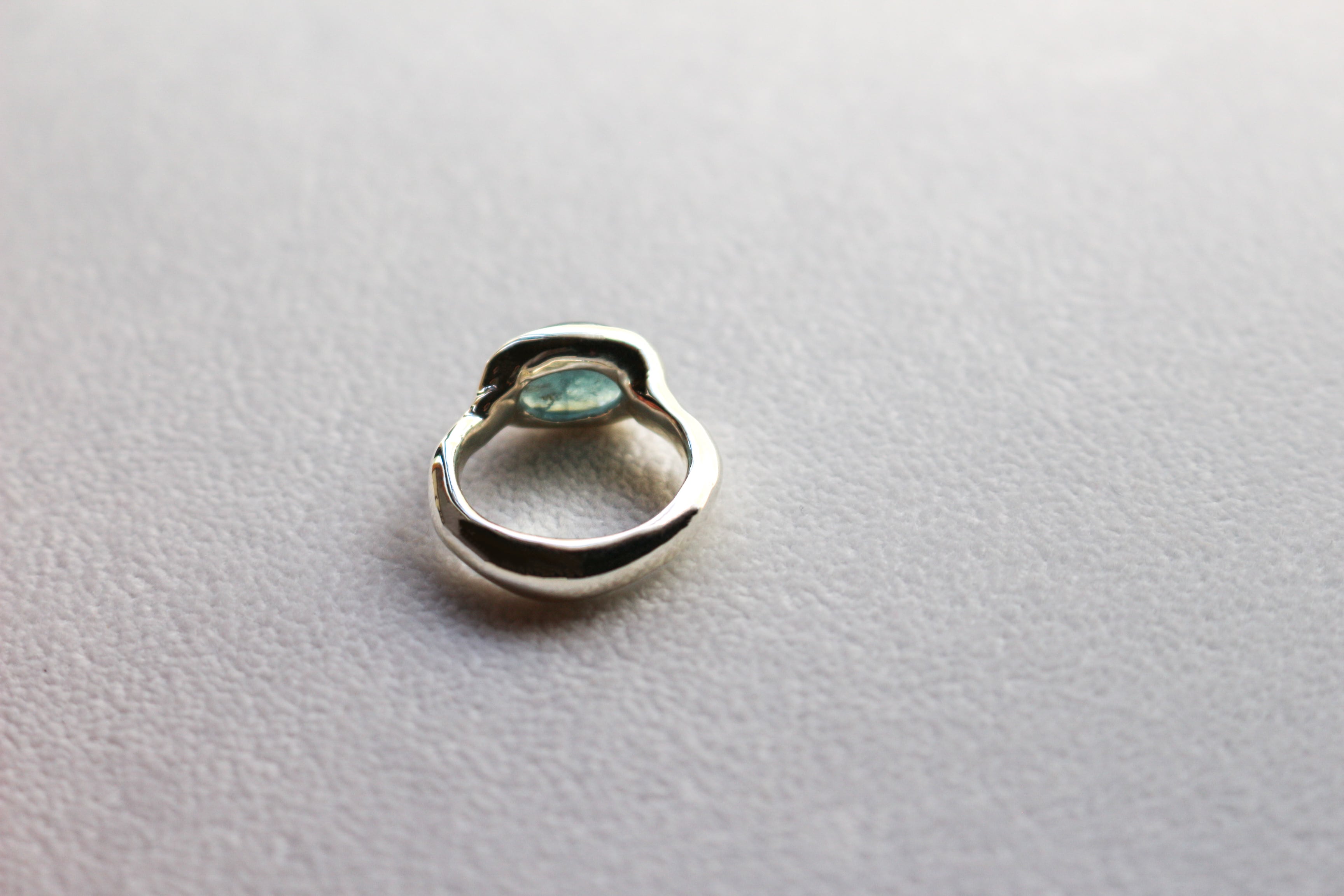 aquamarine ring (アクアマリン) グリーンがかった深い色合いのブルーのアクアマリン。ブラジル産。 小さな黒い点が見えますが、内包物です。 ユニセックスデザイン。 size 11号 material silver925 stone size w13mm×d9mm×h7mm